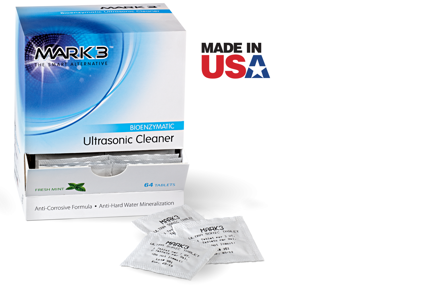 Ultrasonic Cleaner Bioenzymatic tablets, 64 tab per bx, Mark 3 manufacturer. Anti-corrosive formula.